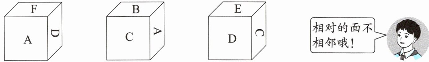 6. 有一个正方体,六个面上分别写着 A、B、C、D、E、F。有 3 人从不同的方向观察该正方体,看到的结果如下。