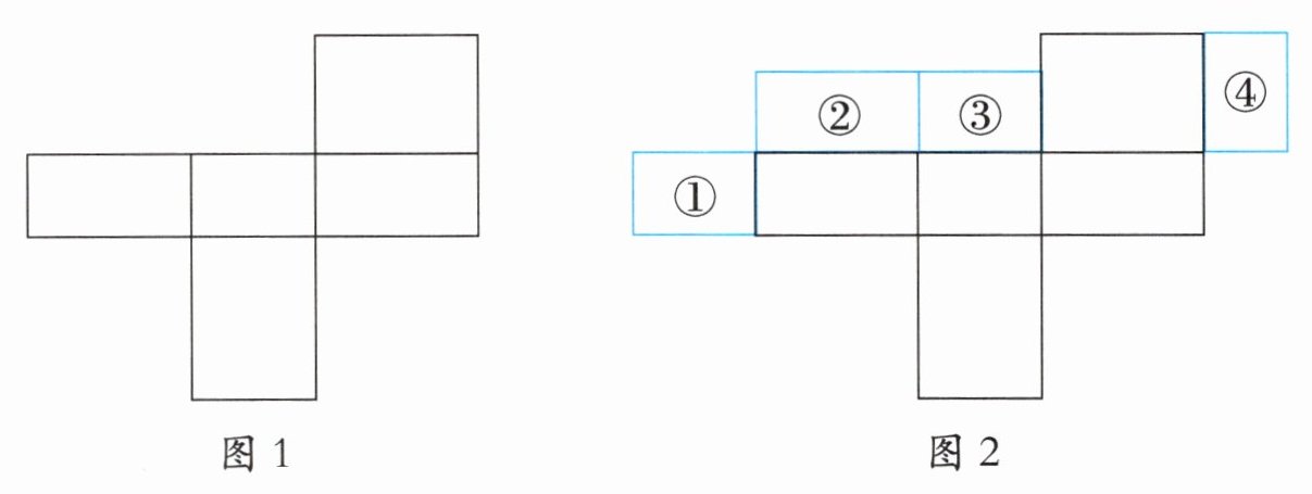 5. 一个长方体展开后的图形有 6 个面。图 1 呈现了其中的 5 个面,现需从图 2 中的①~④这几个面中,选择一个合适的面,使得图 1 能够成为一个完整的长方体展开图形,那么这个面可以是(
