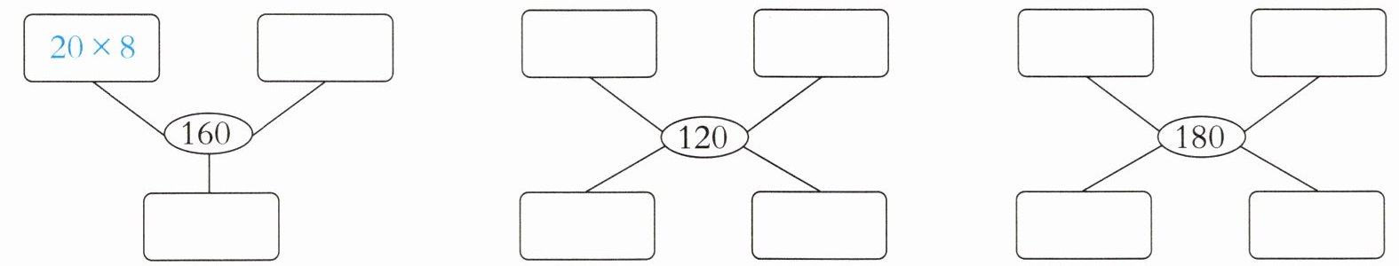 求积是$160$的算式$,$可以先想哪两个数的积是$16$。$2×8 = 16,$可以写出$20×8$。