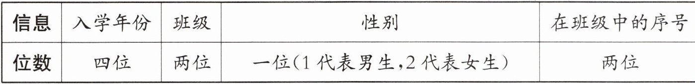 1. 学校要给全校学生编制学号,同学们提出了不同的编制学号的方案。