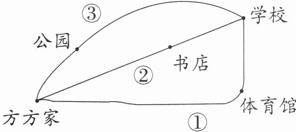 4. 方方从家出发去学校有 3 条路可以走(如图),哪条路最近?说说你的理由。