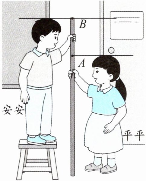 )线段 $AB$ 的长。(2) 如果平平比安安高,那么凳子的高(
