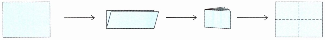 4. 一张长方形纸有 4 个直角,将一张长方形纸连续折叠两次,展开后,结合折叠的痕迹,一共可以找到(