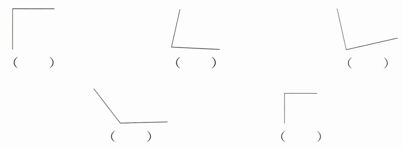1. 用三角尺上的直角比一比,下面的图形哪些是直角?是直角的在()里画“√”。