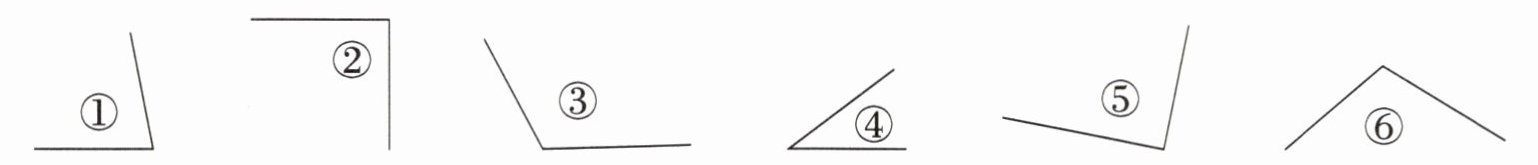 (1)画一个锐角。 (2)画一个直角。 (3)画一个钝角。
