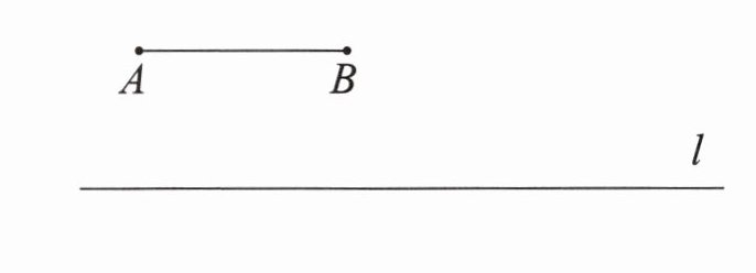 (2)用圆规在直线 $ l $ 上作线段 $ CD $,使 $ CD = AB $。