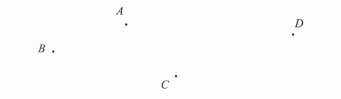 直线$AD$:过点$A$和点$D$用直尺画出直线$AD$,向两端无限延伸。