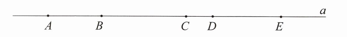 1. 直线 $ a $ 上有 $ A $、$ B $、$ C $、$ D $、$ E $ 五个点,共有( )条射线、( )条线段。