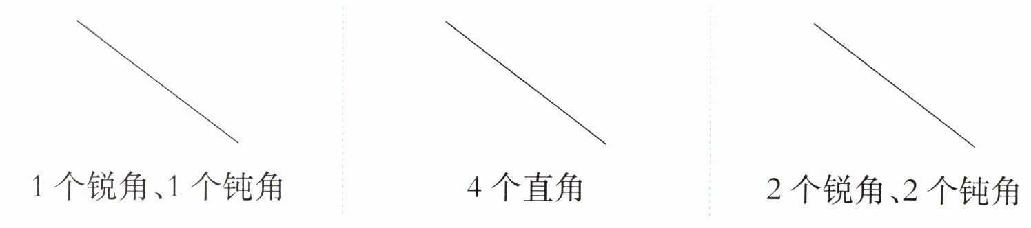 五、在下图中各加一条线,使每个图形中的角符合要求。
