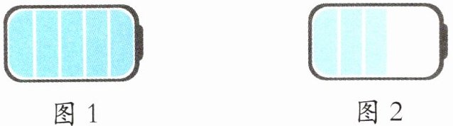 4. 张阿姨的手机充满电时电量显示如图 1,每一小格表示的电量相等。某天她看见手机电池的电量显示如图 2,这时张阿姨用掉了全部电量的$\frac{( )}{( )}$,还剩全部电量的$\frac{( )}{( )}$。