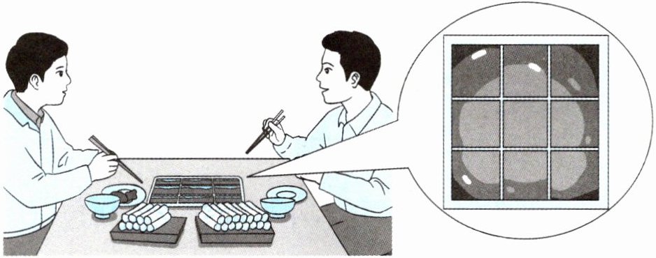 在 4 个格子里煮牛肉,煮牛肉的格子占所有格子的$\frac{( )}{( )}$;