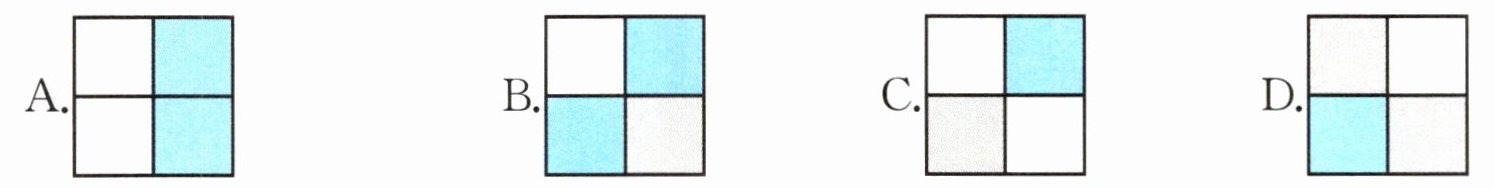 2. 李阿姨想要买一款正方形地砖,她希望这款地砖的$\frac{1}{4}$是白色,$\frac{1}{2}$是蓝色,剩余的部分是灰色。下列地砖中,符合要求的是(