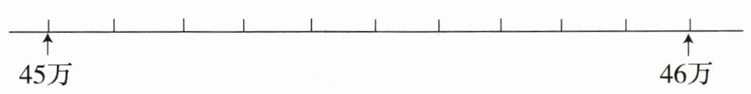 (2)依据我国现行的标准,中型出租客运汽车在行驶里程达到 50 万千米时就要报废。一辆出租车已经行驶了 456078 千米,请你在数线图上标一标,再四舍五入到万位。