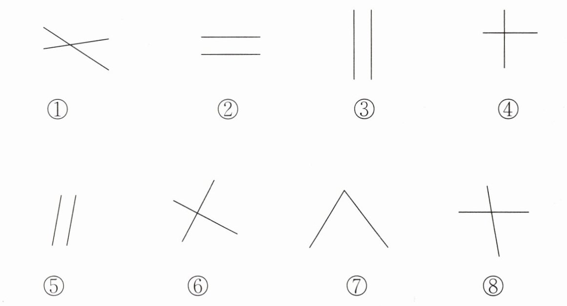 1. 下面几组线中,哪几组是相交的?哪几组是互相垂直的?