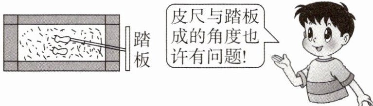 6.不准确。因为从直线外一点到这条直线的所有线段中,与直线垂直的线段最短。裁判员应该测量脚跟到踏板的垂直线段的长度。图中测量出的成绩要比准确成绩长一些,因此不准确。