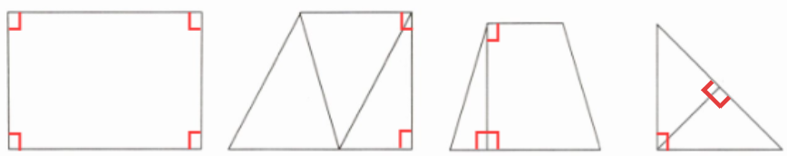3. 用三角尺比一比,找一找下面各图中,哪两条线段是互相垂直的,标出直角符号。