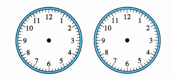 (注:因无法直接绘制图形,实际答题时需在钟面图上对应位置画出时针和分针。)