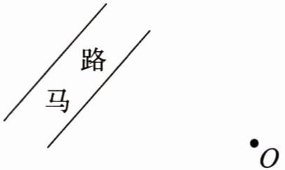 (2)小明要从 $O$ 点出发横穿马路,怎样走最近? 画一画。