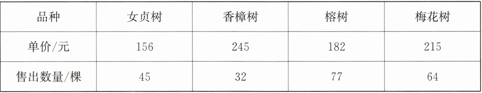 (1)女贞树:7020元,香樟树:7840元,榕树:14014元,梅花树:13760元