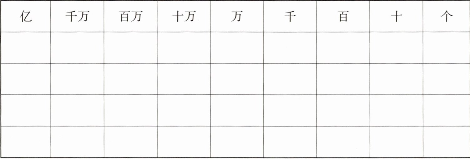 5. 在下面的数位顺序表中,按顺序写出下面各数。