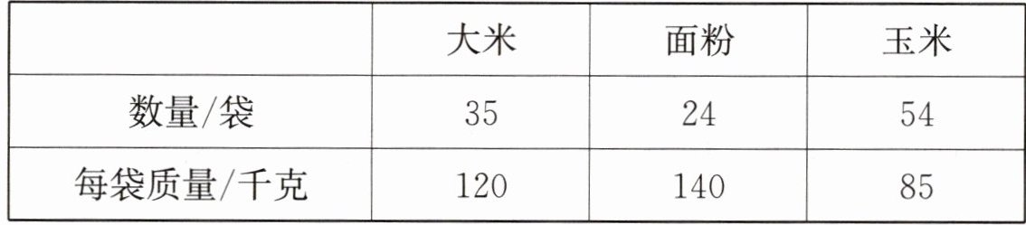 (3)问题:大米、面粉、玉米一共有多少千克?解:35×120+24×140+54×85=4200+3360+4590=12150(千克)
