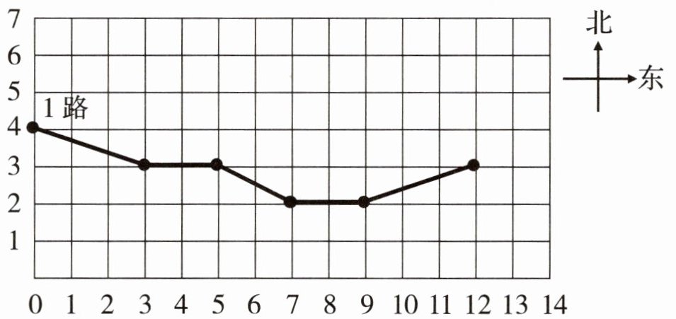 (2)2 路公交车从西向东的行驶路线是$(0,0)→(0,2)→(5,1)→(7,2)→(9,3)→(12,4)$,1 路公交车和 2 路公交车可以在( , )换乘。