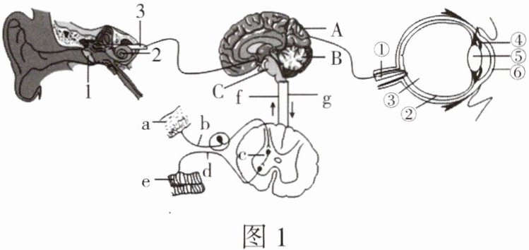 (3)植树过程中,红红看到同学铲的土险些要落到自己的脚上,立马将腿后撤,请用图1中相关的数字、字母和箭头写出该过程神经冲动的传导路径: