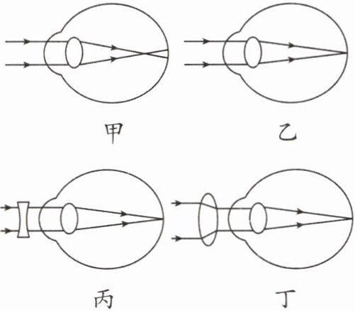 ,形成近视。下列近视眼的成像位置及矫正图示,搭配正确的是( )A. 甲和丙