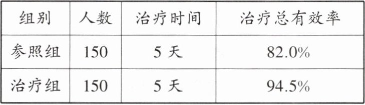 资料三:科学家为研究磷酸奥司他韦的临床疗效,选择了急诊呼吸道病毒性感染患者300例,将其随机分成参照组与治疗组,参照组给予患者利巴韦林注射液,治疗组给予患者磷酸奥司他韦注射液(治疗情况如下表)。