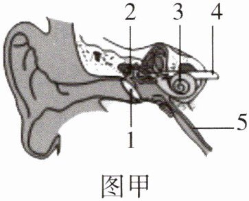 9. 耳是人体的重要感觉器官,听觉是人们获取信息的重要途径,图甲是耳的结构模式图,请分析回答:
