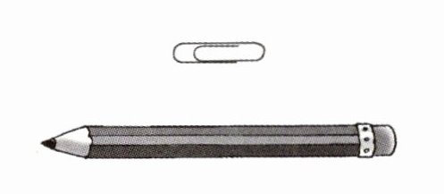 3. 观察下图,回形针长 3 厘米,估一估,铅笔长约( )。