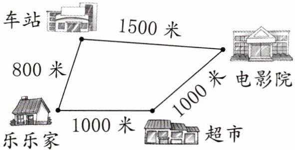 (1) 乐乐从家出发,经过车站到电影院,一共要走多少米?