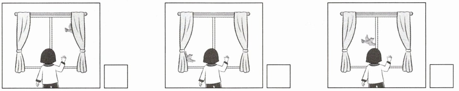 豆豆看见小鸟从窗前飞过。请你按时间顺序用①②③给这三幅图编号。