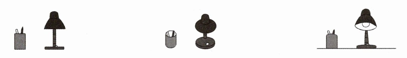 1. 桌子上放着一盏台灯和一个笔筒,小朋友悠悠想看个究竟。