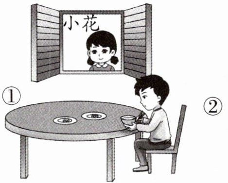 (2) 下面两幅图中,哪幅是小花看到的?在下面画“√”。
