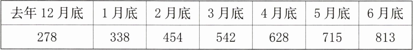 | | 去年12月底 | 1月底 | 2月底 | 3月底 | 4月底 | 5月底 | 6月底 |
