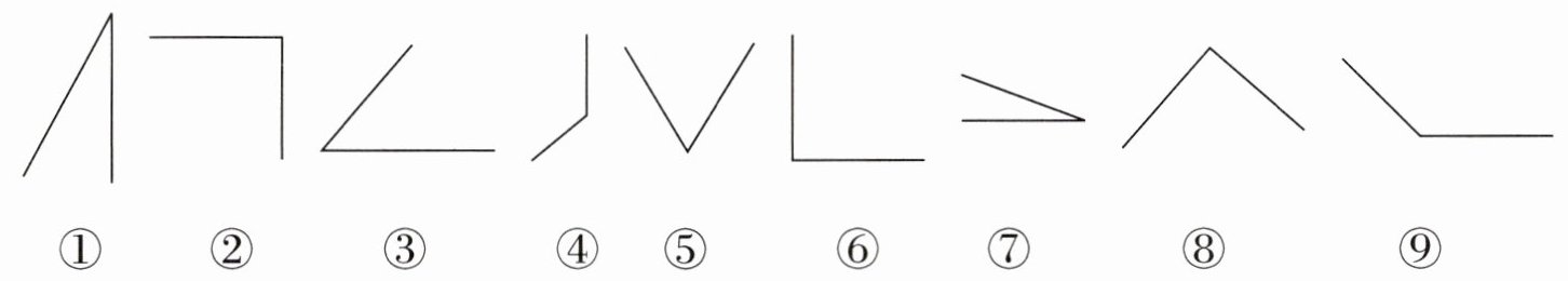 锐角:①③⑤⑦ 直角:②⑥⑧ 钝角:④⑨