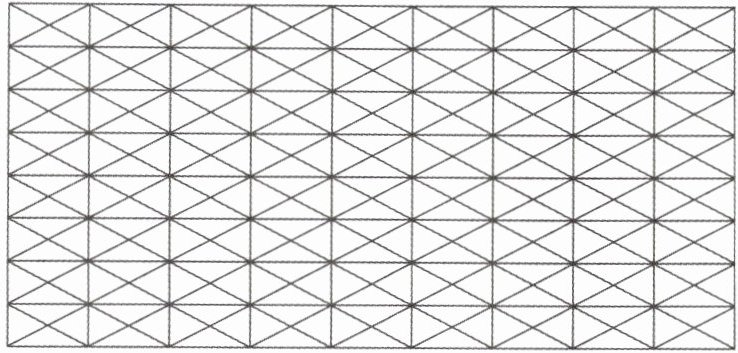 在网格图中,选取左上角开始,每4个小三角形组成的大三角形区域,将大三角形内部涂上颜色,沿着网格图的对角线方向,间隔一个大三角形涂色,形成一种斜纹的图案效果。