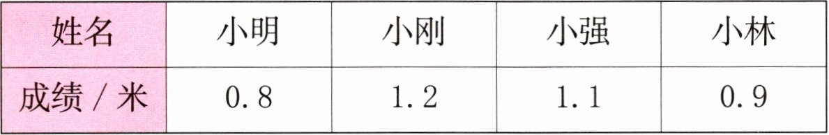 |成绩 / 米|0.8|1.2|1.1|0.9|
