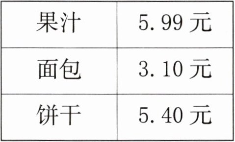 |果汁|5.50 元|果汁|5.99 元|果汁|4.50 元|