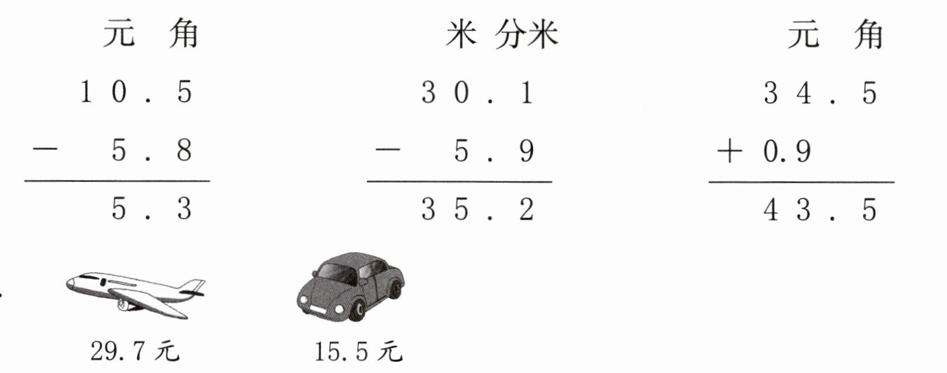 (1)乐乐买了一辆玩具汽车和一架玩具飞机,一共需要多少元?