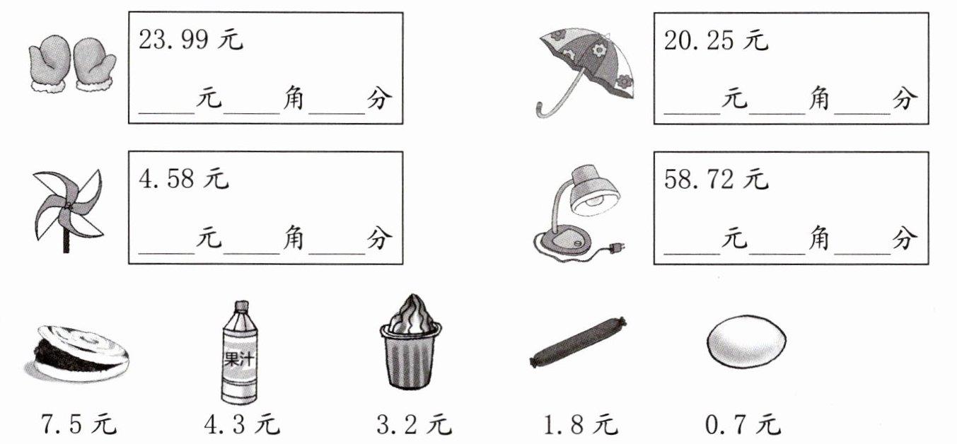 (2)文文拿了 10 元钱,买了一杯冰淇淋,应找回多少元?
