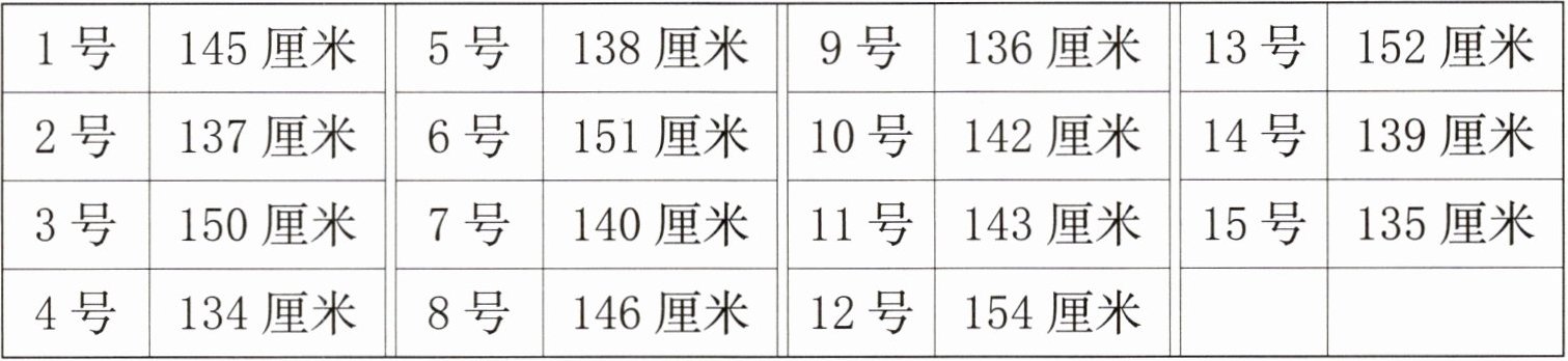 |1号|145厘米|5号|138厘米|9号|136厘米|13号|152厘米|