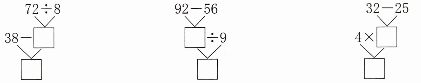 38-72÷8=29 (92-56)÷9=4 4×(32-25)=28