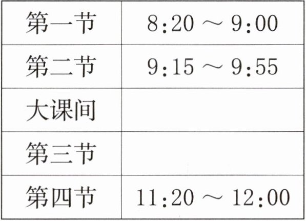(2)大课间为30分钟,算一算,把表格填写完整。
