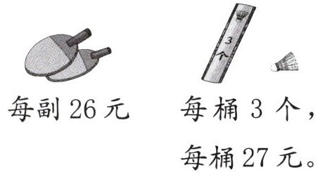 3. 一副乒乓球拍比一个羽毛球贵多少元?