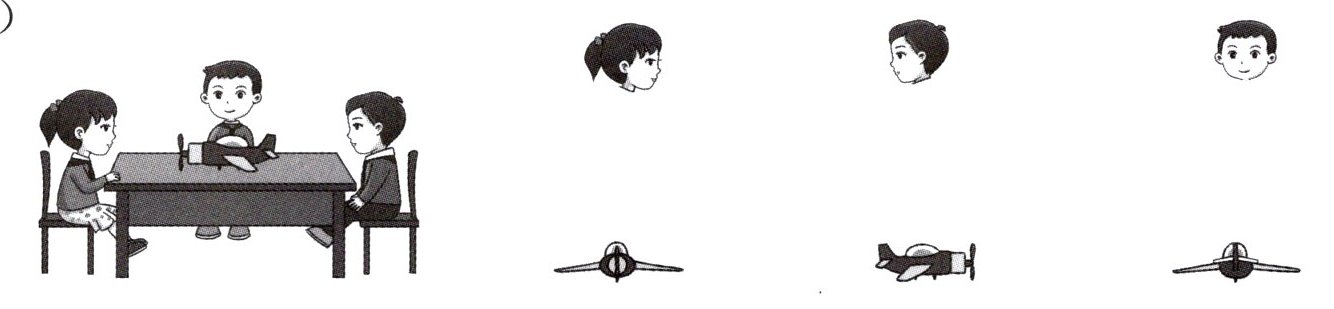 (1) 左边的小女孩连第二幅图中的第二个飞机图示,中间的小男孩连第二幅图中的第一个飞机图示,右边的小男孩连第二幅图中的第三个飞机图示。