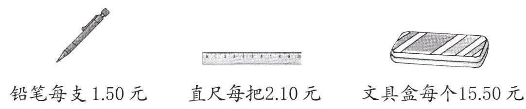 铅笔每支1.50元 直尺每把2.10元 文具盒每个15.50元