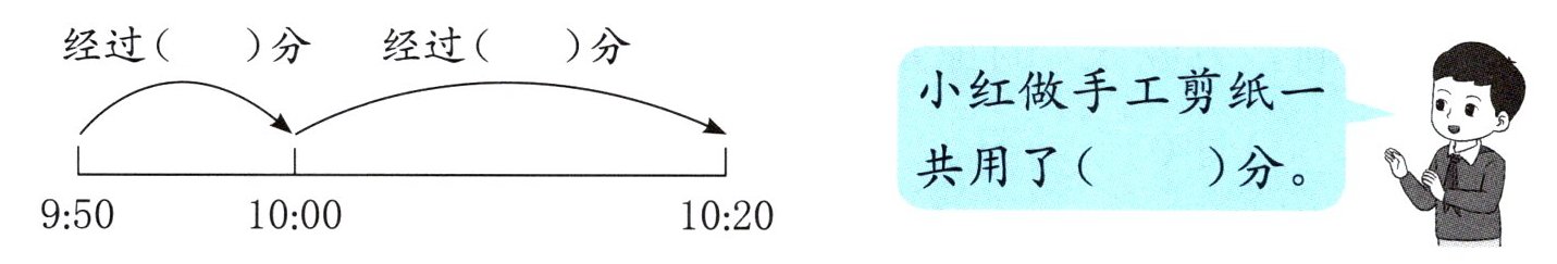 3. 用下图表示小红做手工剪纸用的时间。想一想,填一填。