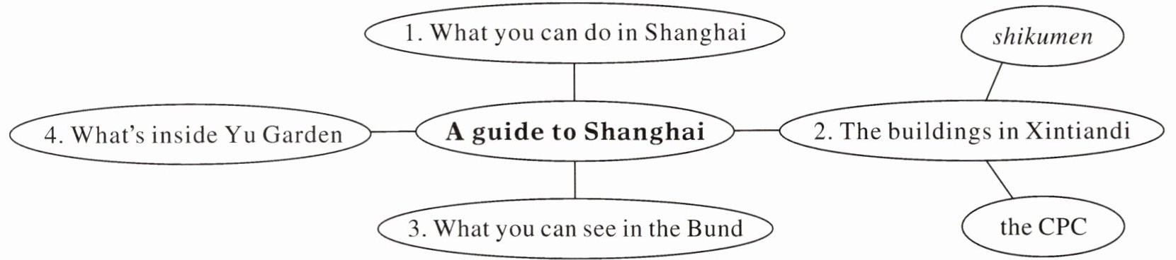 二、One possible version:Shanghai is a city that is both modern and traditional. When you visit the city, you can explore famous places and see China’s past and present. Xintiandi is famous for its shikumen buildings from the 19th century. You can also visit the Site of the First National Congress of the CPC there and learn about the history of the CPC. When you stand in the Bund, you can see many old Western-style buildings in the west and skyscrapers in the east. Yu Garden is in the centre of the old city. There are many beautiful traditional buildings inside. You can also buy local food and gifts there.